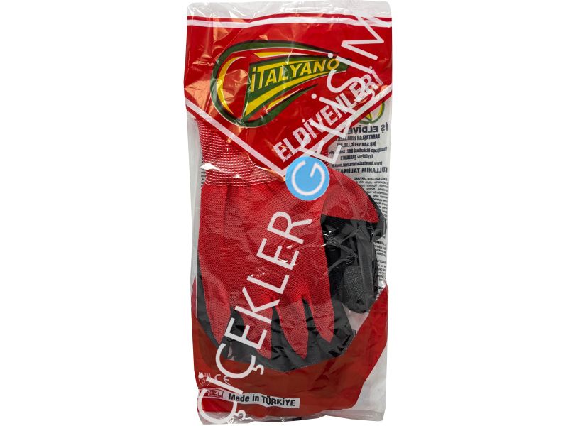 İTALYANO NİTRİL ELDİVEN (12 Ad.*50 Pk.) Siyah-Kırmızı Poşetli