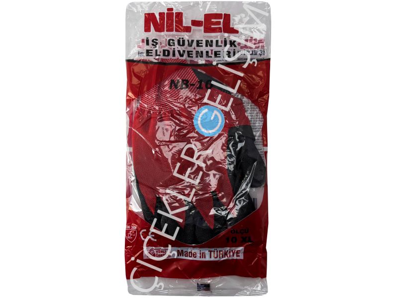 NİL-EL NİTRİL ELDİVEN (12 Ad.*50 Pk.) Siyah-Kırmızı 10 Xl. Poşetli